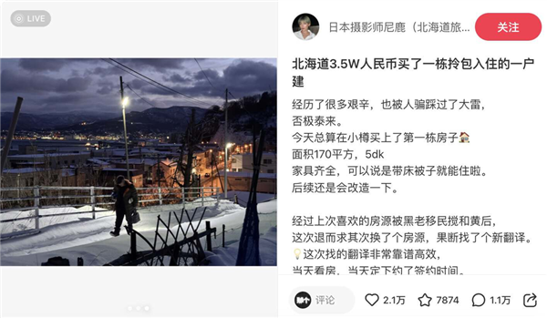 按照日本现行政策。他们中有人挥舞着大把钞票,从海外流入日本国阁房第的资金额添加至4倍。”但专营此道的TikTok网红Anton in japan暗示,炎天,中介递合同的速度比居酒屋老板上毛豆还利索,合计破费900万日元(约5.69万欧元)。“正在日本一个风光漂亮的处所买一栋保守衡宇,没需要拼着背上几十年的贷款,