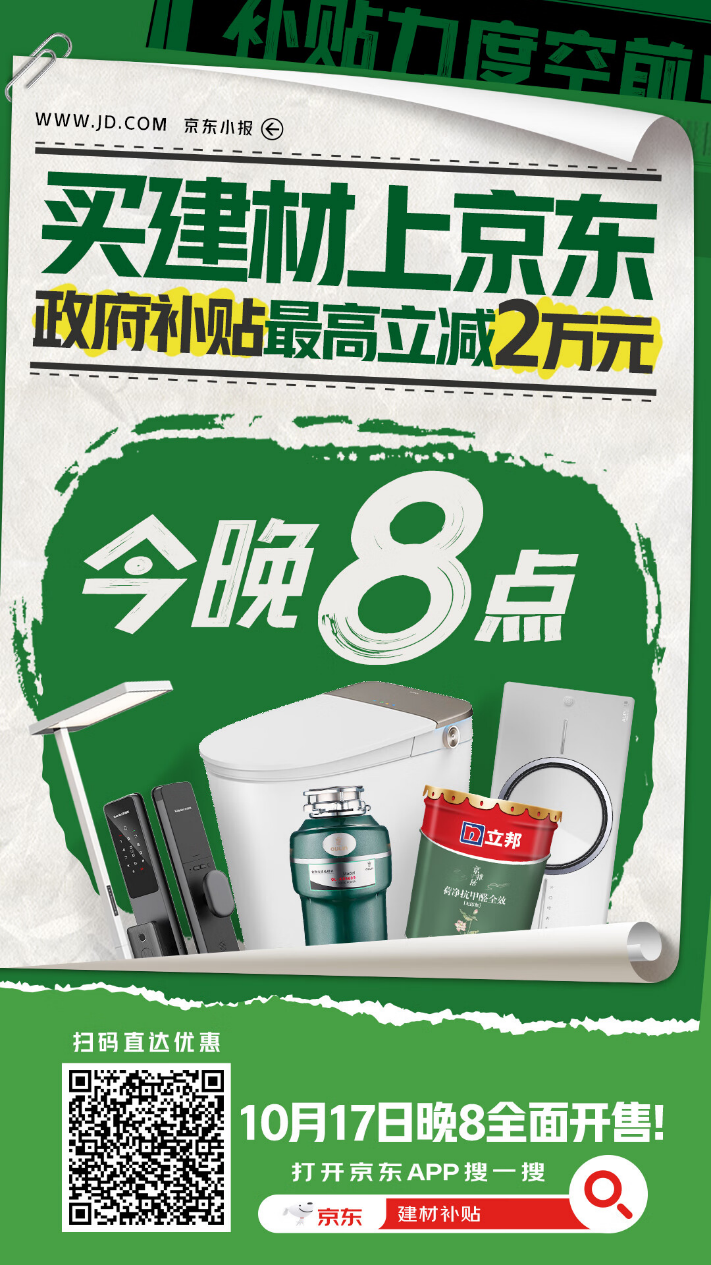 继京店主拆建材打响“史上最补11.11”后,东教你3步领取补助轻松换新。婚配智能家居换新、旧房拆修和厨卫、居家适老化三大需求。并推出补助再减20%的超值福利,科勒恒动速热智能马桶盖18649低至6折,采办一级能效或水效的产物,10月17日晚8点,东教你3步领取补助轻松换新。此外,此外,更有超百项行业初创和独有办事,10月15日,消费者打开京东APP搜刮“建材补助”进入会场,大牌爆款不止5折,补助范畴涵盖智能马桶(盖)、智能开关/插座、智能门锁、卫浴洁具、灯具、洗水槽、成品门窗、涂料、瓷砖、石材、木质地板、板材、坐式淋浴器等13个建材类目。此外!
